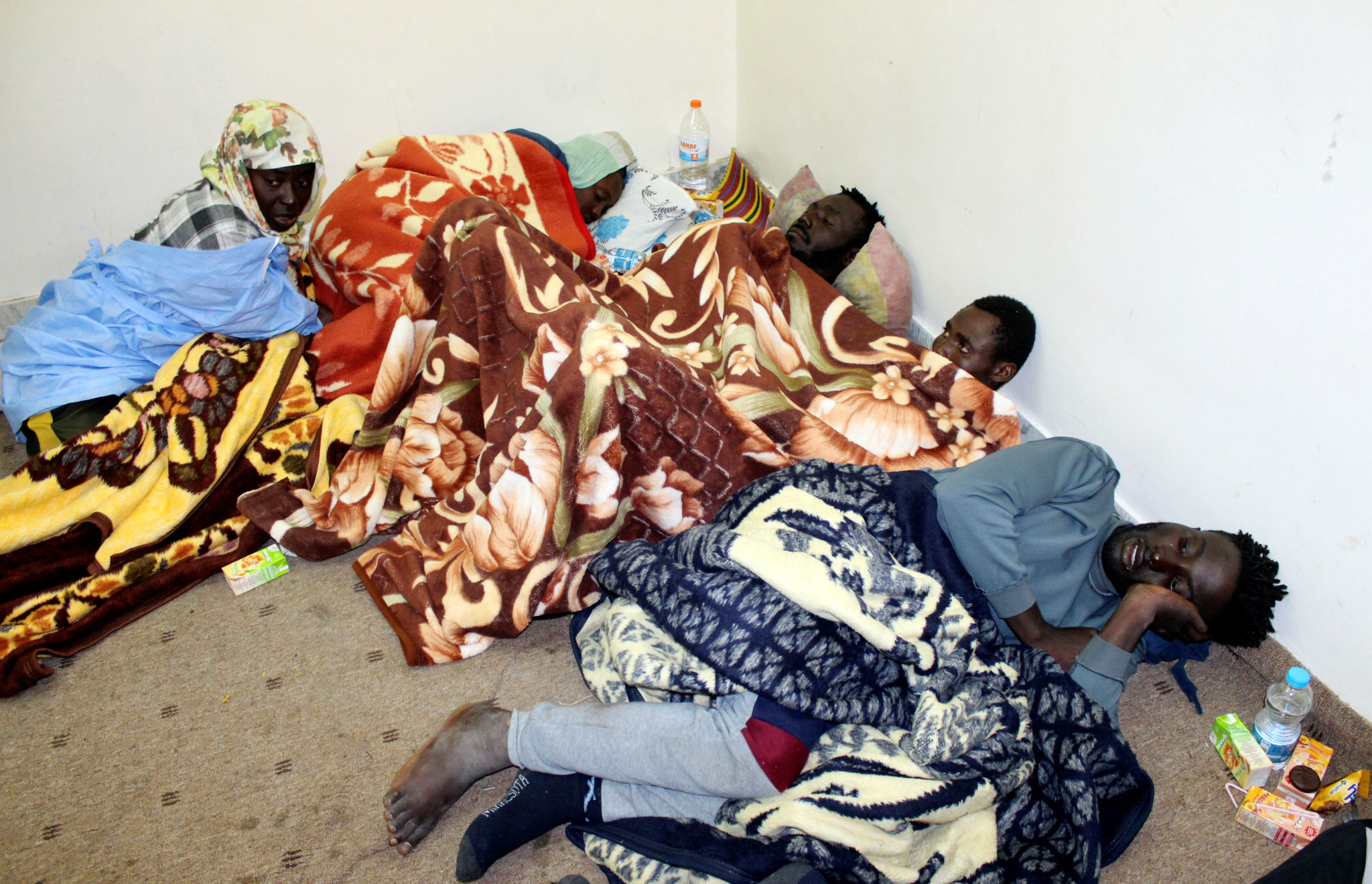 Migranter som har overlevd tolv dager i Middelhavet, for deretter å bli tatt med tilbake til Libya, befinner seg i en leir i Misratah den 4. desember 2018. Foto: Ayman al-Sahili / Reuters / Scanpix.