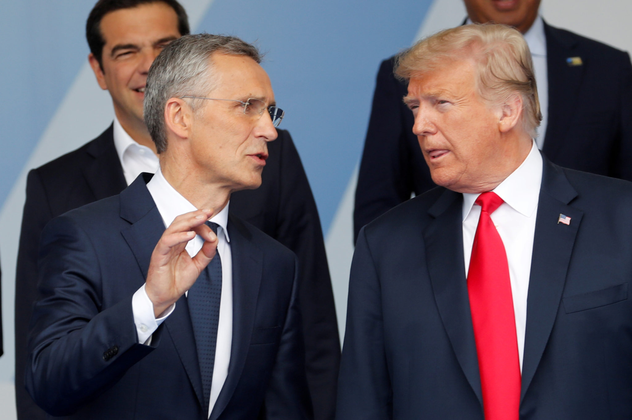 Jens Stoltenberg og Donald Trump under et NATO-toppmøte i Brussel den 11. juli 2018. Foto: Yves Herman / Reuters / Scanpix.