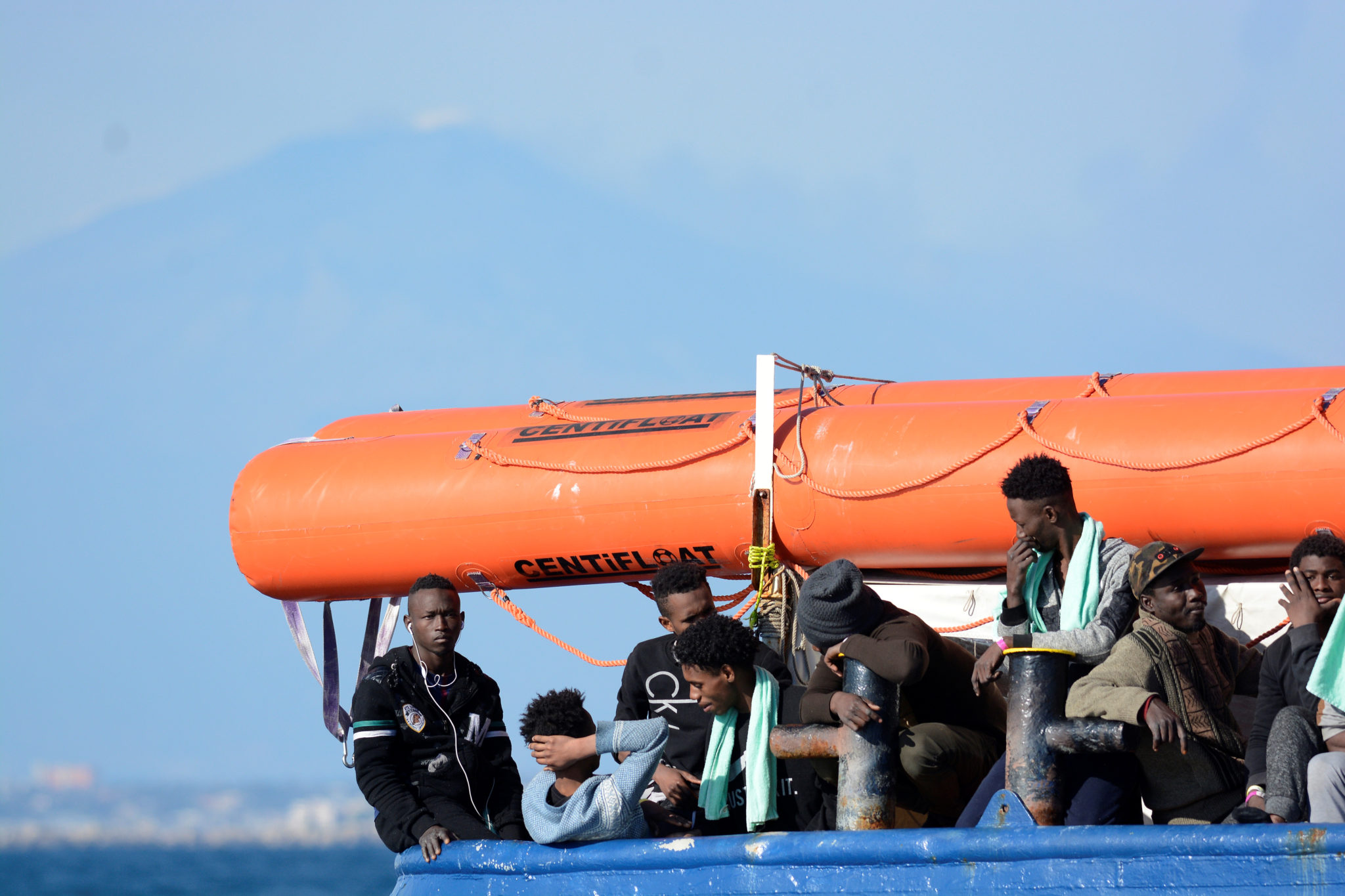Migranter befinner seg ombord på skipet «Sea Watch 3» utenfor kysten av Sicilia den 27. januar 2019. Foto: Guglielmo Mangiapane / Reuters / Scanpix.
