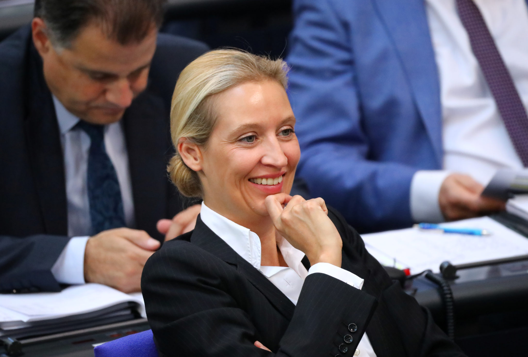 AfD-leder Alice Weidel under en debatt i Forbundsdagen i Berlin den 4. juli 2018. Foto: Hannibal Hanschke / Reuters / Scanpix.