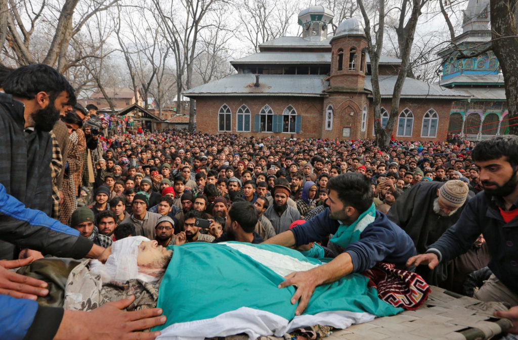Begravelsen til en muslimsk militant, Noor Mohammad Tantray, som ble drept i skuddveksling med indiske soldater 26. desember 2017. Blodet holder konflikten i gang. Foto: Danish Ismail/Reuters/Scanpix
