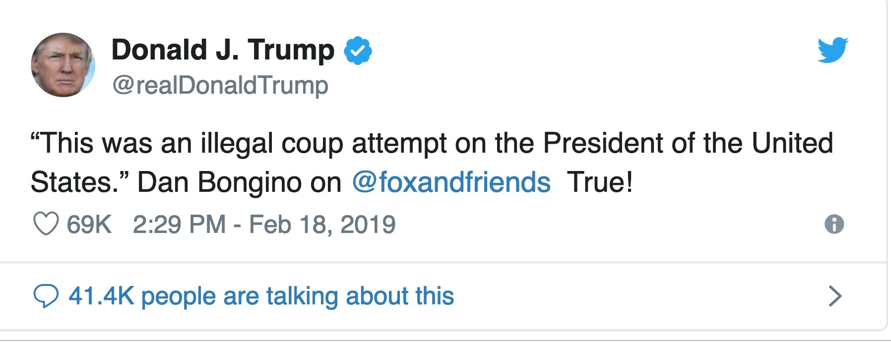Donald Trump reagerte mandag på avsløringene til FBIs avsatte nestleder Andrew McCabe som søndag fortalte at Rod Rosenstein foreslå å bruke det 25. grunnlovstillegg for å få avsatt Trump. – Statskupp, tvitret Trump.