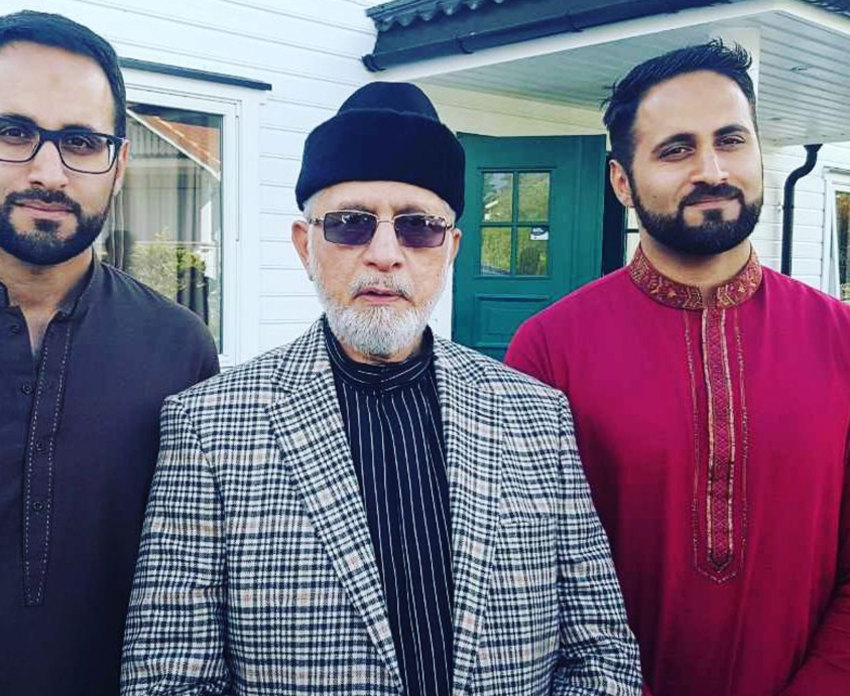 Tahir ul-Qadri flankert av Yasir (t.v) og Yasir Ahmed