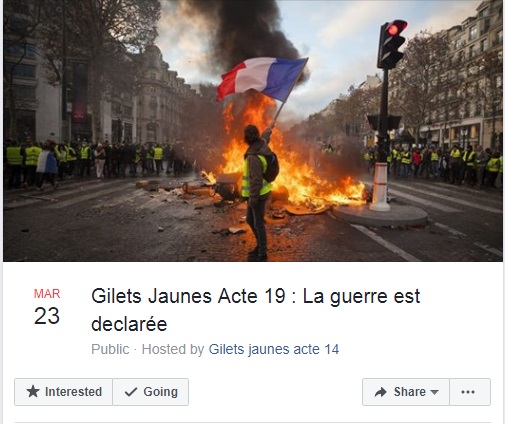 De gule vestene sier på Facebook at de er blitt erklært krig. I et opprop ber de folk samle seg på Champs-Élysées på lørdag for å «kjempe for Frankrike, fremtiden og friheten».