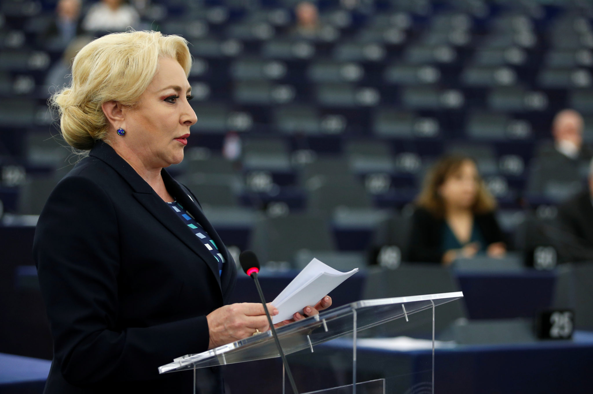 Viorica Dăncilă taler under en debatt i EU-parlamentet i Strasbourg den 15. januar 2019. Foto: Vincent Kessler / Reuters / Scanpix.