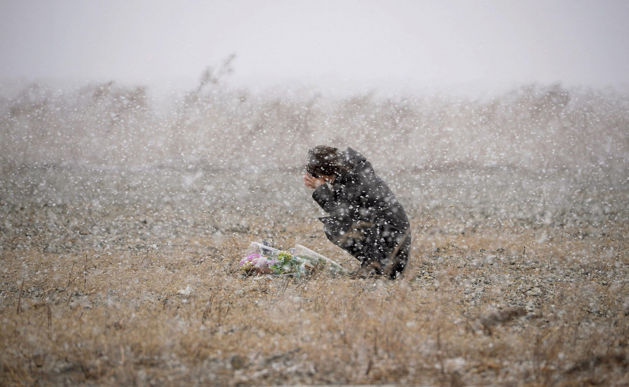 En kvinne ber for alle som døde i jordskjelvet og tsunamien 11. mars 2011. Nærmere 16.000 omkom og 2.500 er savnet. Skjelvet på styrke 9 på Richters skala utløste også nedsmelting av Fukushima-atomkraftverket og dermed var det over og ut med kjernekraft i Japan. Minnene om Hiroshima og Nagasaki gjør også sitt.