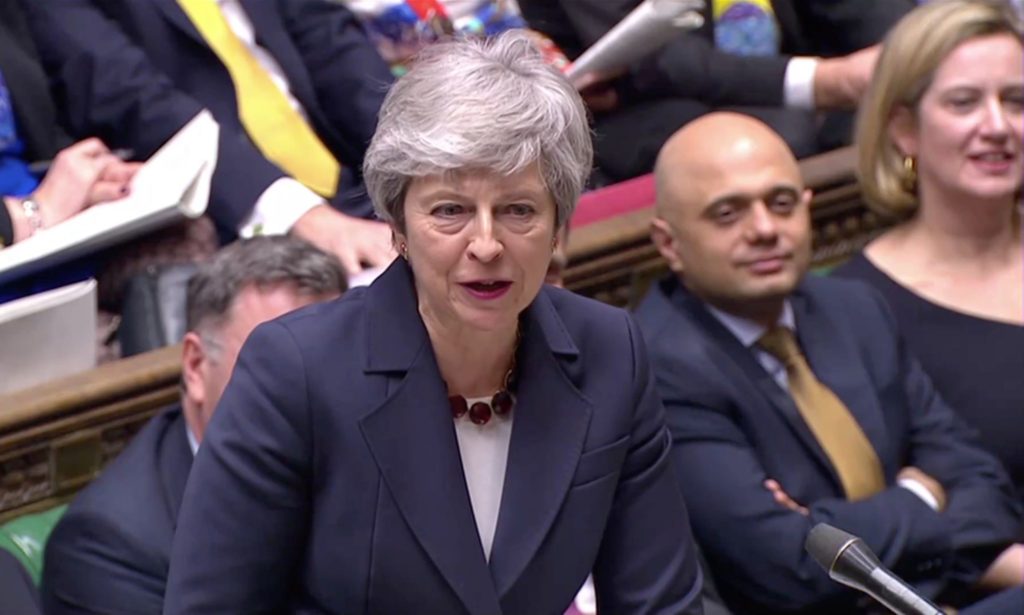 Den første statsråden har nå forlatt Teheresa Mays regjering etter at hun nektet å lytte til fertallet av statsrådene og sier hun nå vil forsøke å finne en løsning med Arbeiderpartiets Jeremy Corbyn. Corbyn vil at Storbritannia forblir i tollunionen.
