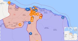 I morgentimen har krigslykken snudd, og Haftars styrker står nå i utkanten av Tripoli. Kartet over viser frontene ved 11-tiden på lørdag. Interesserte kan følge live oppdatering her. Utviklingen skjer raskt og Al-Jazeeras sak fra lørdag morgen om at det er frykt for full-skala krig synes allerede utdatert.
