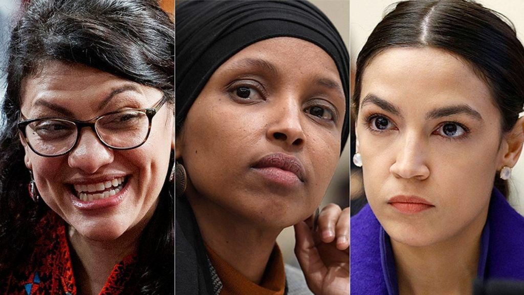 Triumviratet: Rashida Tlaib, Ilhann Omar og Alexandra Ocasio-Cortez.