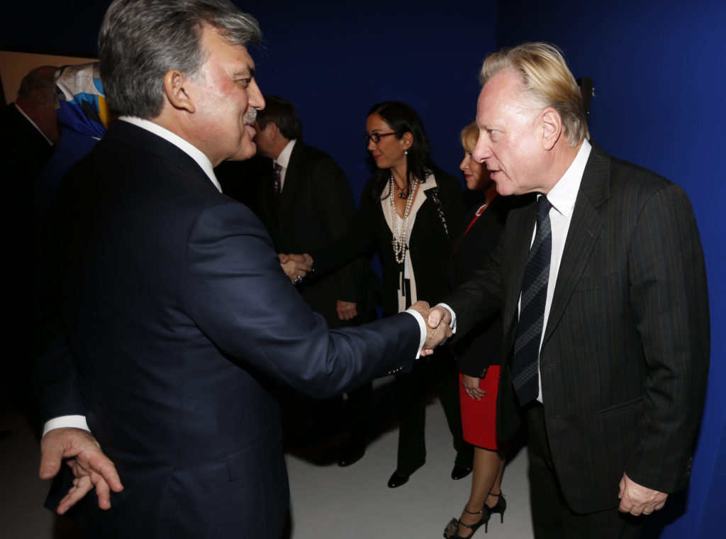 Stein Olav Henrichsen hilser på Tyrkias president Abdullah Gül under åpning av en Munch-utstilling i Istanbul i 2013. Foto: Lise Åserud/NTB Scanpix