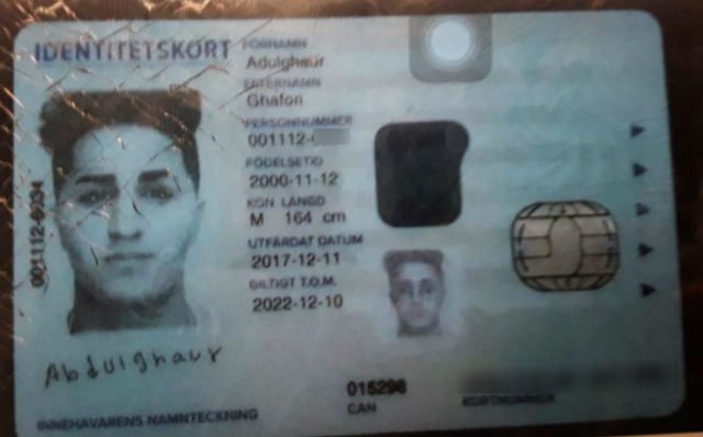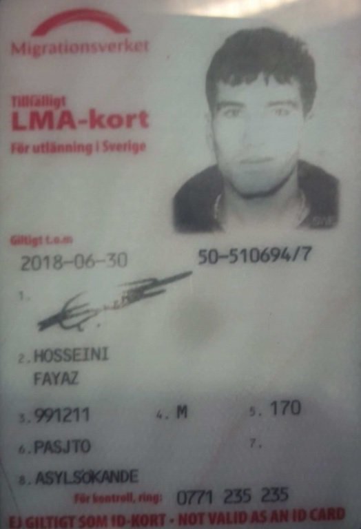 Ifølge et id-kort Fayaz hadde på seg er han født 11.12.1999. Etter flere avslag fikk han til slutt opphold i Sverige gjennom gymnasielagen.