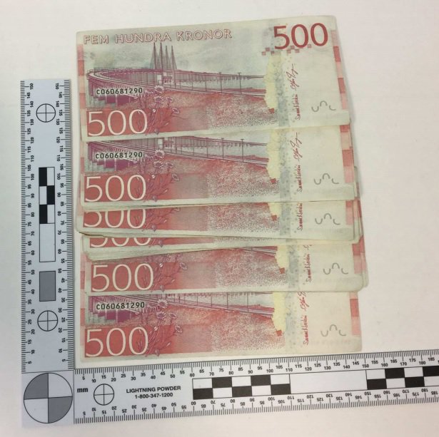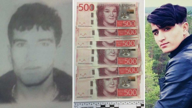 Da Sundsvall-politiet visiterer Fayaz i arresten finner de 30.620 kronor i en sko. Politiet konstaterer at det dreier seg om forfalskede sedler. Man konstaterer også at Adulhaurs fingeravtrykk finnes på sedlene.