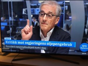 Denne oljepengebruken var altså tema i Dagsnytt 18 på NRK tirsdag 14. mai. I studio møttes finansminister Siv Jensen fra Fremskrittspartiet, og altså partileder Jonas Gahr Støre fra Arbeiderpartiet. Støre er, ikke overraskende, blant dem som har har reagert på økningen i oljepengebruken.