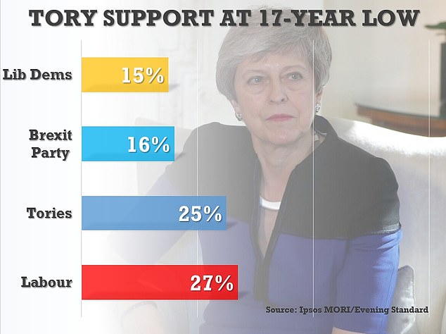 Corbyns påstand om svekket regjering støttes av den siste meningsmålingen som viser at støtten til de konservative ikke har vært lavere på 17 år.