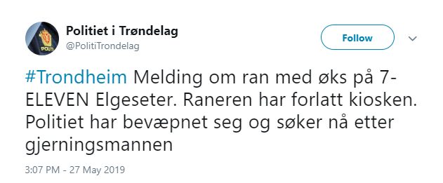 Bevæpnet politi leter etter gjerningsmann som ranet 7-Eleven på Elgeseter med øks.