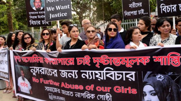 19 år gamle Nusrat Jahan Rafi anklaget i slutten mars koranlæreren sin for seksuell trakassering. Han ble arrestert og hennes vitnemål ble tatt opp på video. Denne videoen ble lekket til sosiale medier. Den arresterte læreren forsøkte først å true foreldrene hennes til å få henne til å trekke anklagen. Dernest skal han ha gitt ordre om at hun skulle drepes.