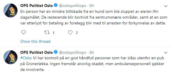 – En person har en mindre bittskade fra en hund som ble sluppet av eieren i forbindelse med slagsmålet. De resterende blir bortvist fra sentrumsnære områder, samt at en som var etterlyst for betaling av forelegg blir med til arresten for forkynnelse av dette, skriver politiet.