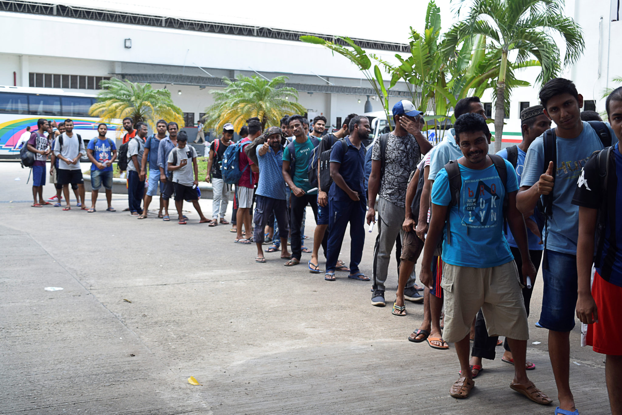 Migranter fra India, Bangladesh og Pakistan som har krysset den mexicanske grensen fra Guatemala, står i kø for å skaffe seg tillatelse til å passere gjennom Mexico i Tapachula den 7. juni 2019. Trump har forlangt at mexicanske myndigheter stanser denne trafikken, og vil i motsatt fall øke tollen på varer fra Mexico. Foto: Jose Torres / Reuters / Scanpix.