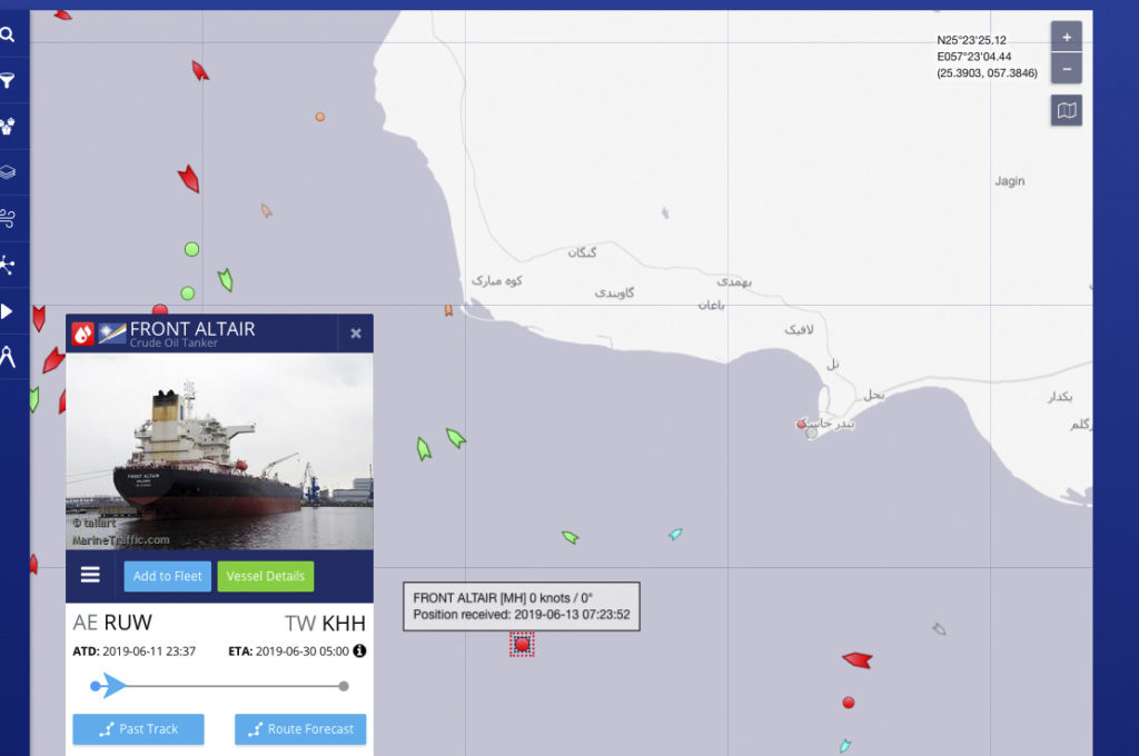 Frontline har også hørt at tankskipet Front Altair skal ha blitt truffet av en torpedo, men dette er ikke bekreftet. Besetningen er evakuert og i trygghet. Det var ingen norske blant dem.