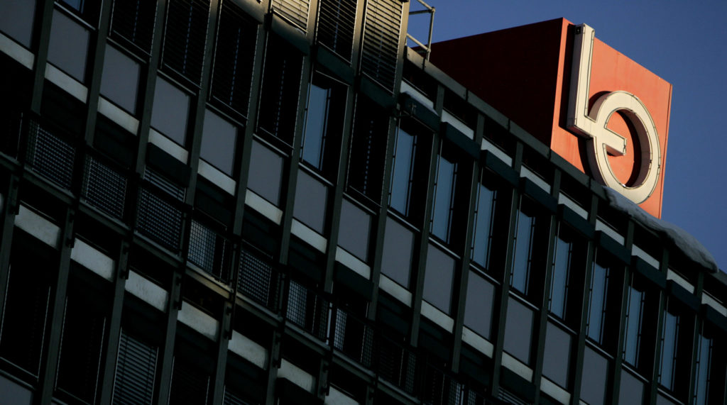 LO-logoen på toppen av Folkets Hus, Youngstorget i Oslo. Foto: Stian Lysberg Solum / Scanpix