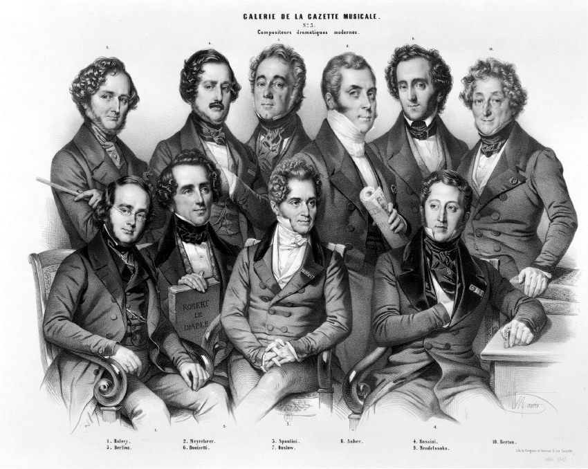 Litografi publisert i Galerie de la Gazette musicale No.3, Paris, 1844, med undertitel Compositeurs dramatiques modernes – Moderne dramatiske komponister.