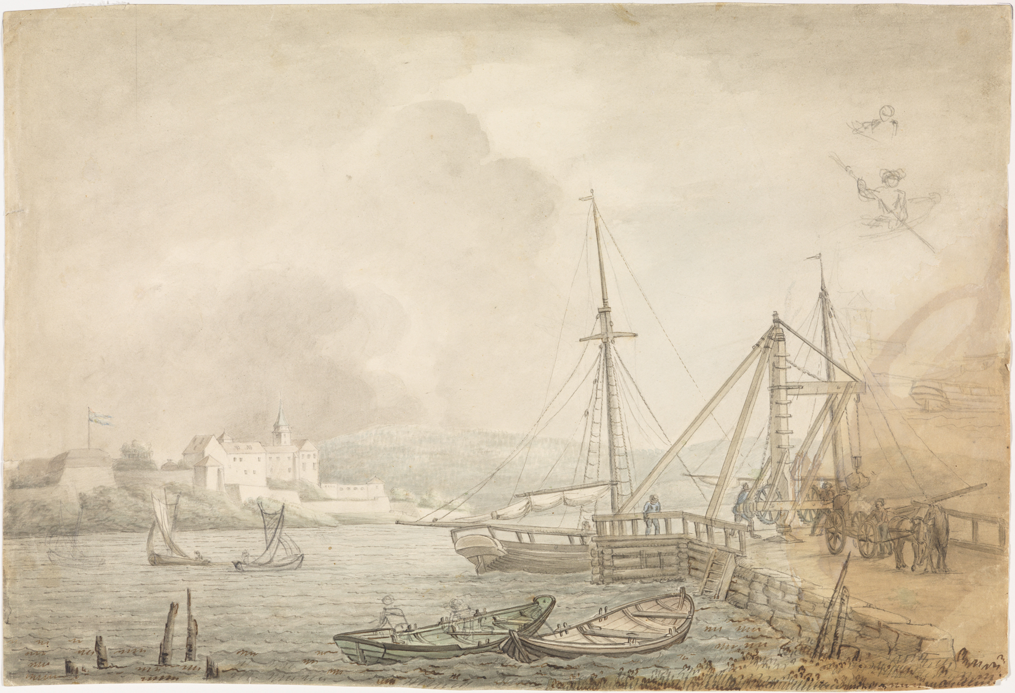 Blyant, penn, akvarell og lavering på papir, 32,1 x 47 cm, Nasjonalmuséet, Oslo