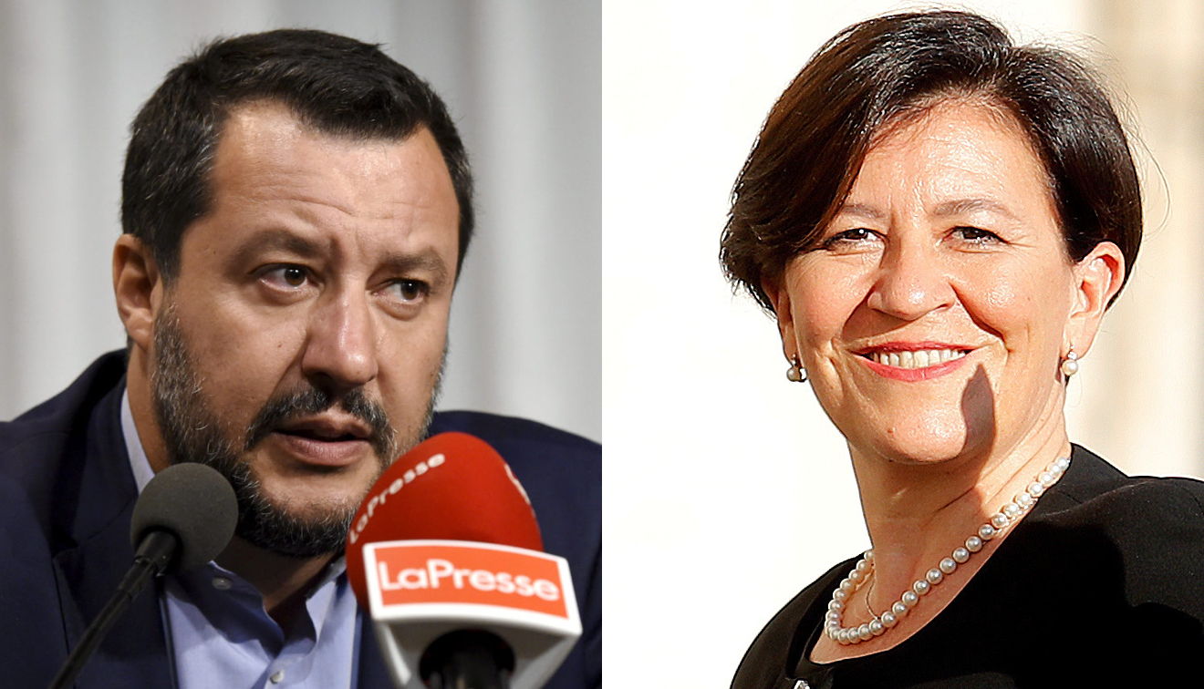 Matteo Salvini og Elisabetta Trenta. Fotografier: Emmi Korhonen / Lehtikuva og Remo Casilli / Reuters / Scanpix.