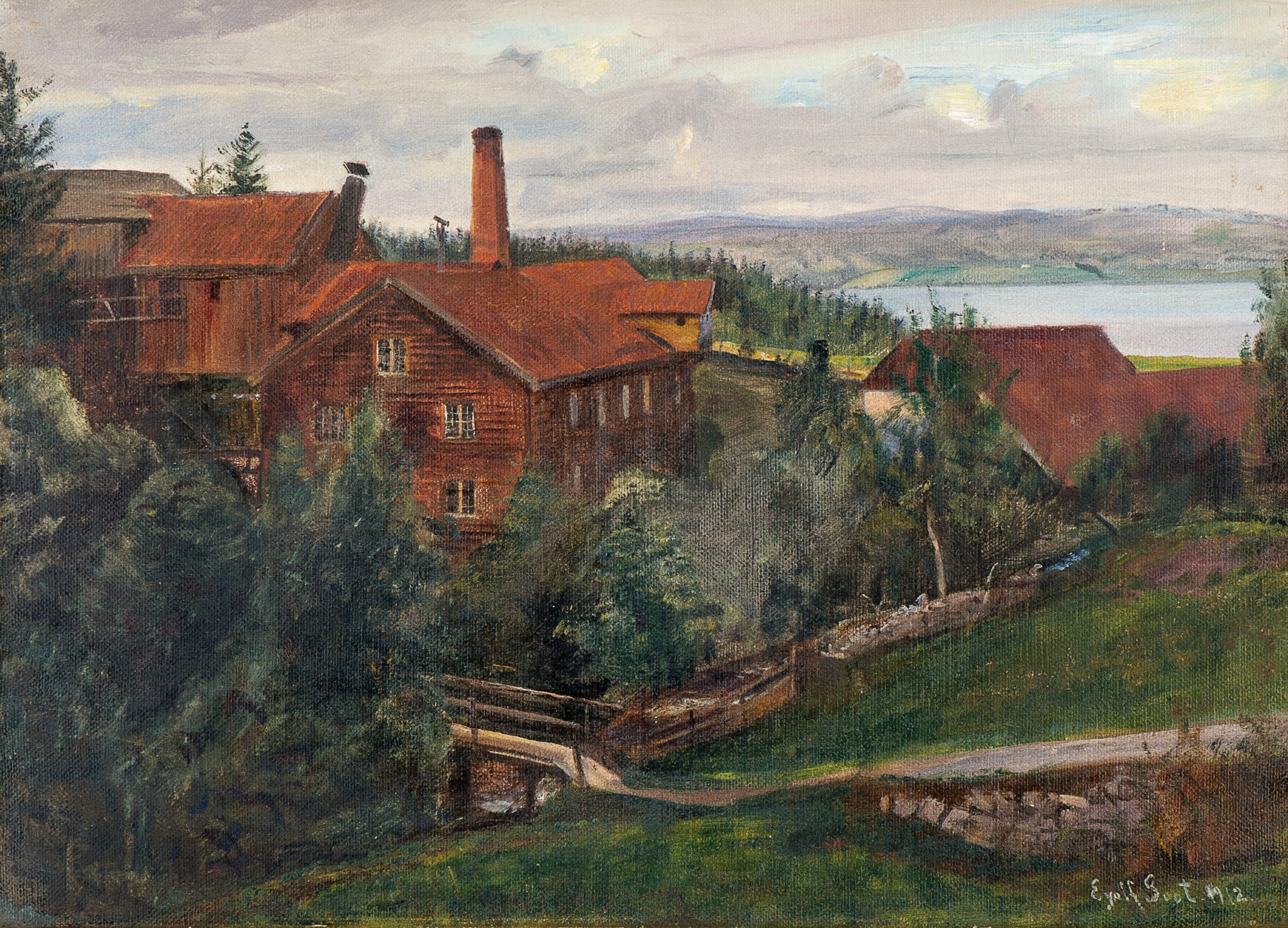 Hexhus Brænderi på Kapp, Toten, ble opprettet i 1864, og var i full drift frem til brennerikrisen i 1909, da driften stanset i tre år. Så da bildet ble malt, var det en Død Fabrik. Men driften tok seg opp igjen, og fortsatte helt til 1940-41, da krigen satte stopp for godt.