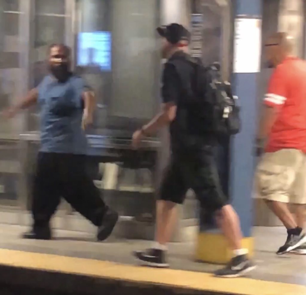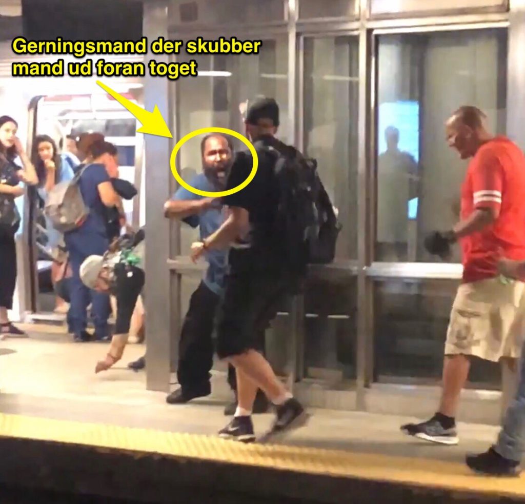 Den muslimske attentatmand skubber en 30-årig mand ned på togskinnerne, og gerningsmanden spytter derefter på et 25-årigt vidne, der vil hjælpe manden på skinnerne.