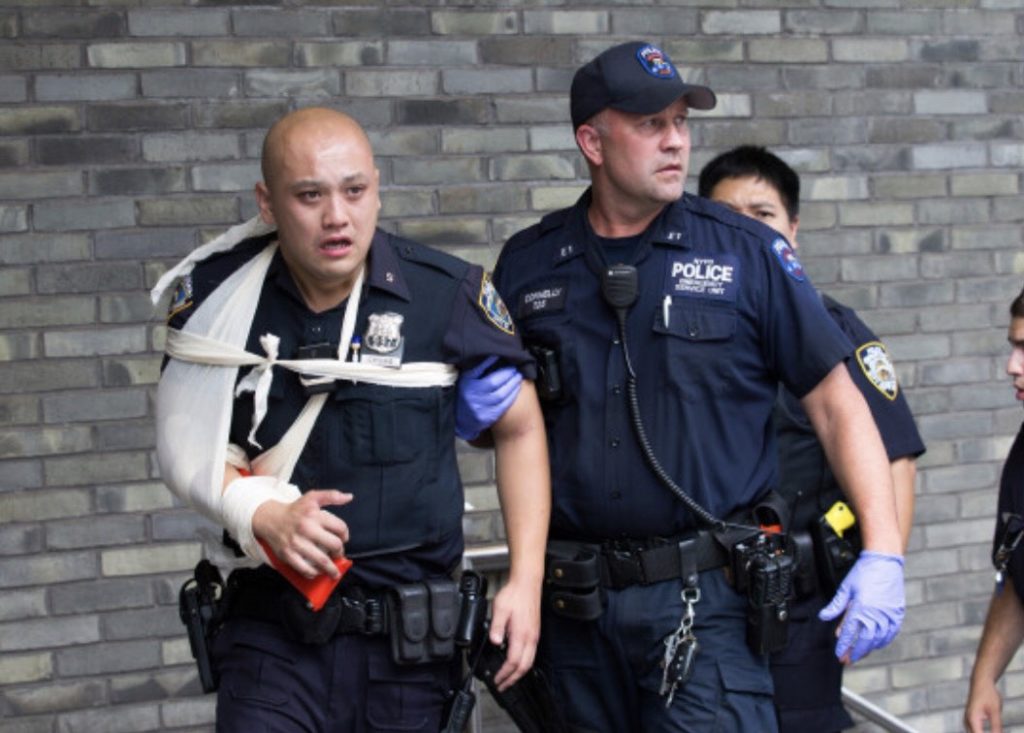 Gerningsmanden råber “Allahu Akbar” udover Broadway-Lafayette togstationen, da politiet anholder islamisten. Det fortæller kilder til det amerikanske medie New York Post, der også bringer fotos af gerningsmanden, der har et stort fuldskæg, som det ofte ses hos islamister.