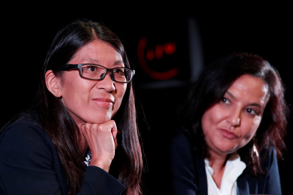 Internasjonal president for Leger uten Grenser, Joanne Liu, rådgiver for humanitære saker for Leger uten Grenser, Hassiba Hadj Sahraoui, på en pressekonferanse i Paris 22. juli der Ocean Vikings operasjon ble presentert. Foto: Benoit Tessier/Reuters/Scanpix