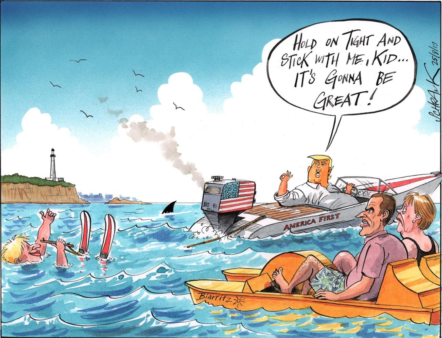 Donald Trump har møtt Boris Johnson på G7 møtet i Biarritz i Frankrike. Det er det første møtet mellom de to statslederne etter at Boris ble valgt som britisk statsminister. De to ser ut til umiddelbart å ha funnet tonen. Trump mener at Boris er rette mann for jobben til å fullføre brexitjobben og vil ha en «veldig stor handelsavtale» med Storbritannia.