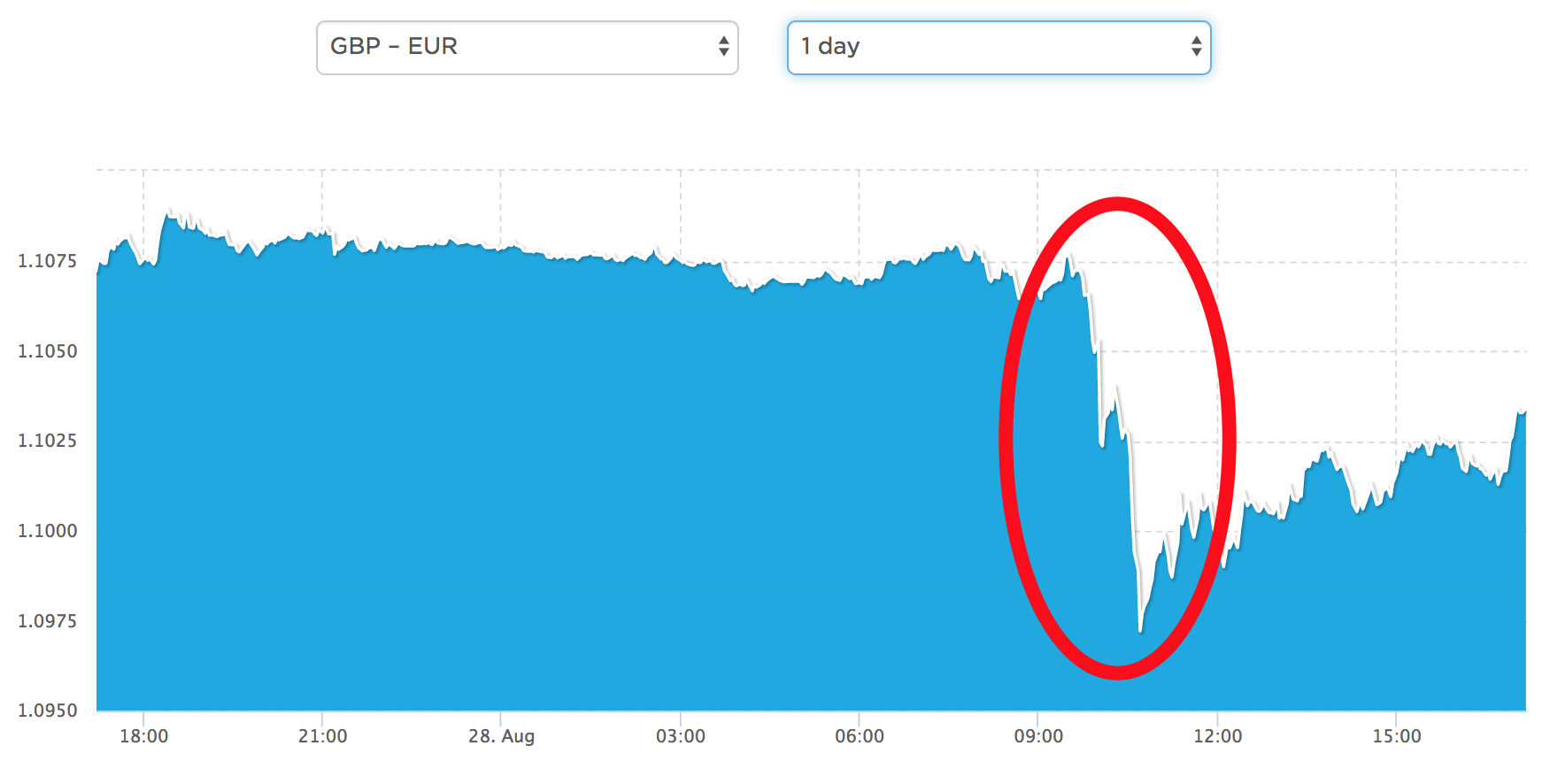 Om man ser på denne onsdagens svingninger alene, for eksempel med The Times Currency Services, kan jo fallet i pund sterling mot euro se riktig dramatisk ut:
