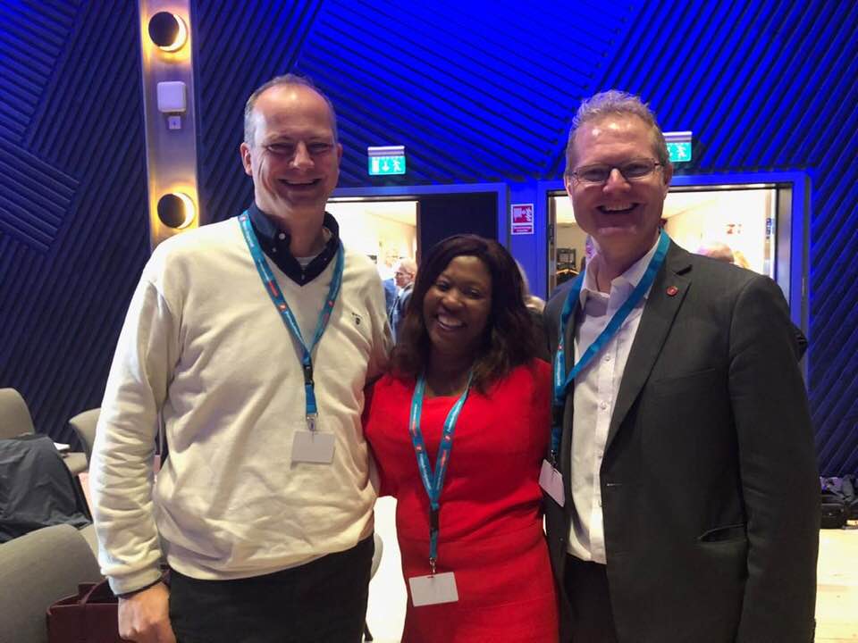 Judith Horntvedt omgitt av Frp-nestleder Ketil Solvik-Olsen og stortingsrepresentant for Frp Tor Andre Johnsen. Foto: Facebook.