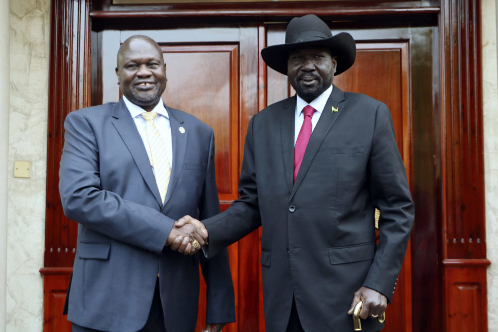 Opposisjonsleder Dr. Riek Machar,vendte tilbake til Juba 9.september og ble møtt av president Salva Kiir. De skal forsøke å danne en koalisjonsregjering innen november. Foto: Sam Mednick/AP/Scanpix