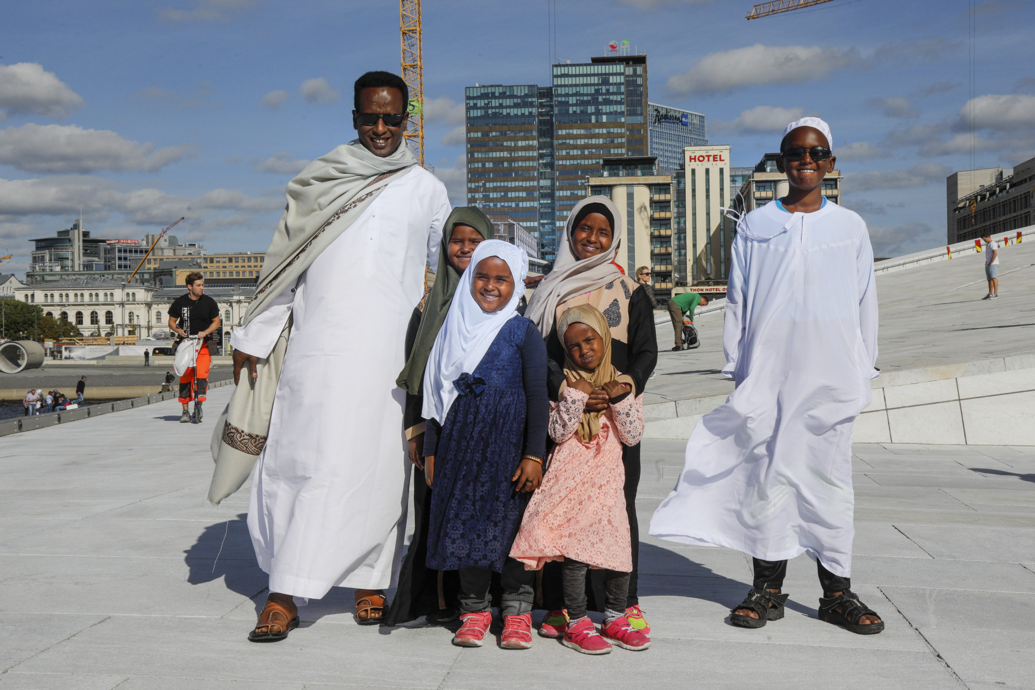 En far har tatt med seg sine fem barn på Operaen i Oslo for å feire id den 12. september 2016. Foto: Heiko Junge / NTB scanpix.