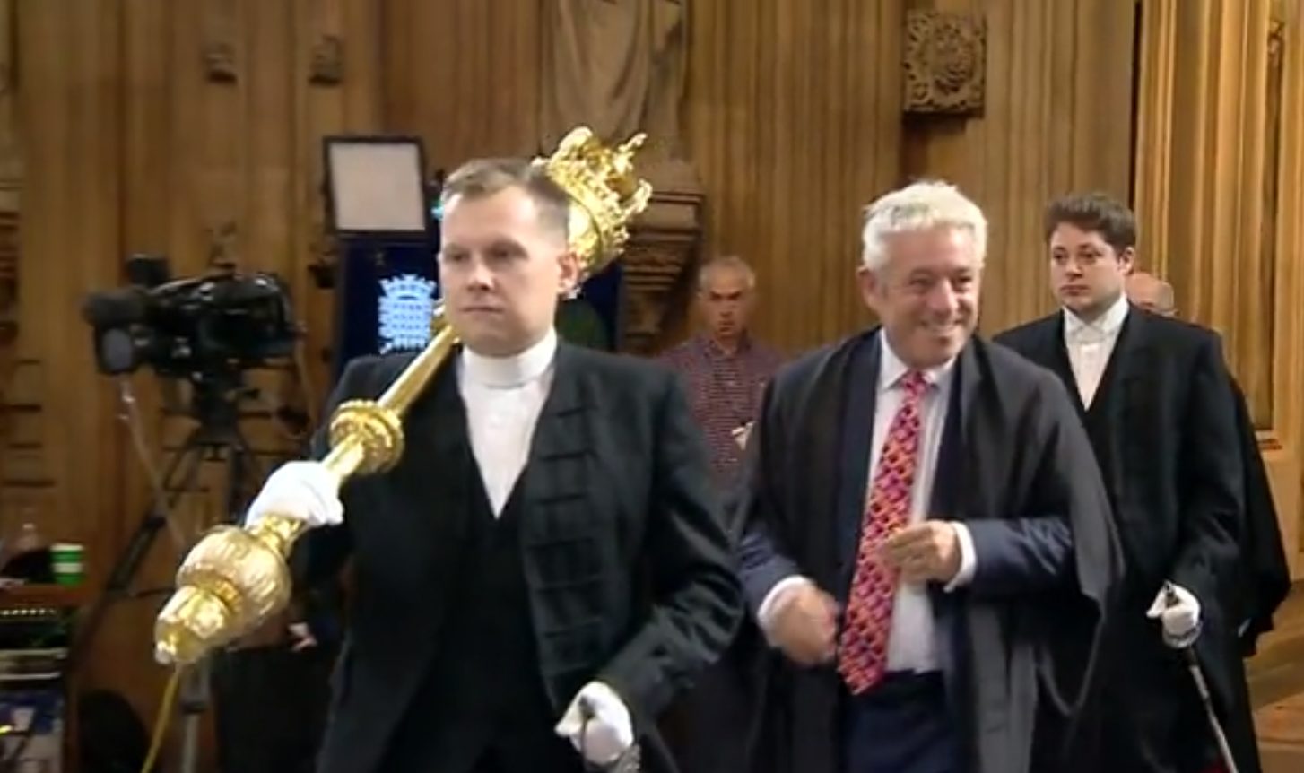Det britiske parlamentet er gjenåpnet. Den smilende speakeren John Bercow paraderte inn, og triumferende ønsket han alle «welcome back to our place of work!».