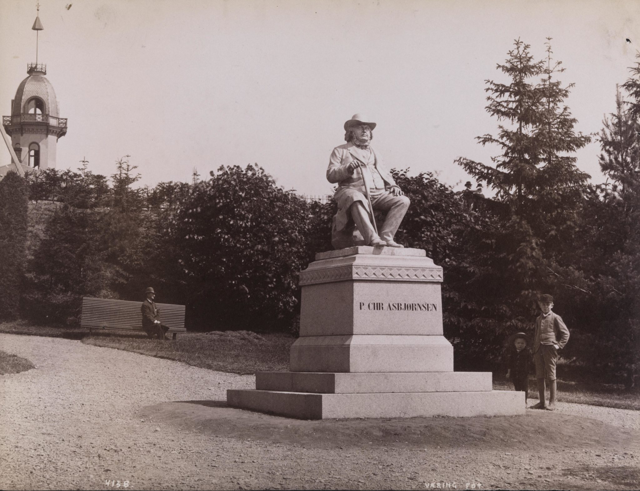 Brynjulf Larsen Bergsliens (1830-1898) monument over eventyrsamleren m.m.m Peter Christen Asbjørnsen (1812-1885).
