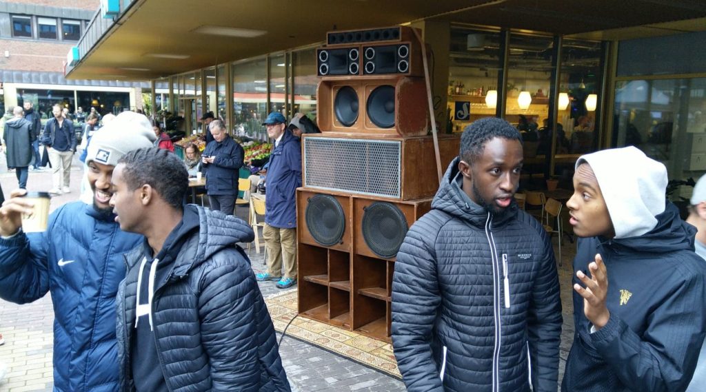 Et kraftig musikkanlegg pumpet ut musikk under hele SIANs markering. Hverken Mahler eller Vivaldi stod på repertoaret. Foto: Øyvind Thuestad