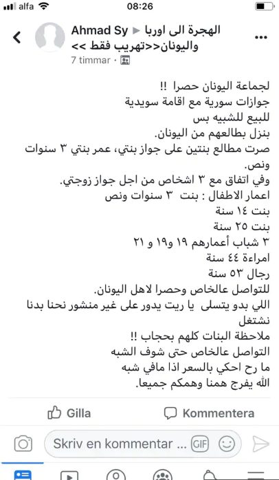 Syriska pass med svenska uppehållstillstånd till salu. Bara till de som ser lika (som passinnehavare). Jag åker själv till Grekland och hämtar upp dem.