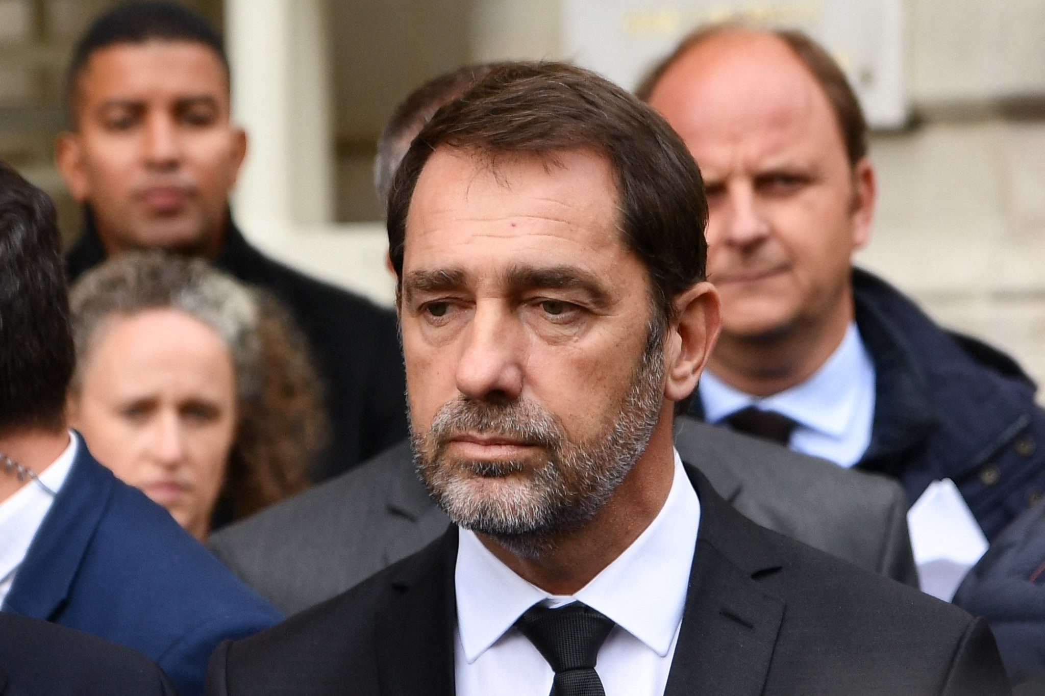 Frankrikes innenriksminister Christophe Castaner under en pressekonferanse utenfor politihovedkvarteret i Paris etter drapene der den 3. oktober 2019. Foto: Julien Mattia / Anadolu Agency / ABACAPRESS.COM / Scanpix.
