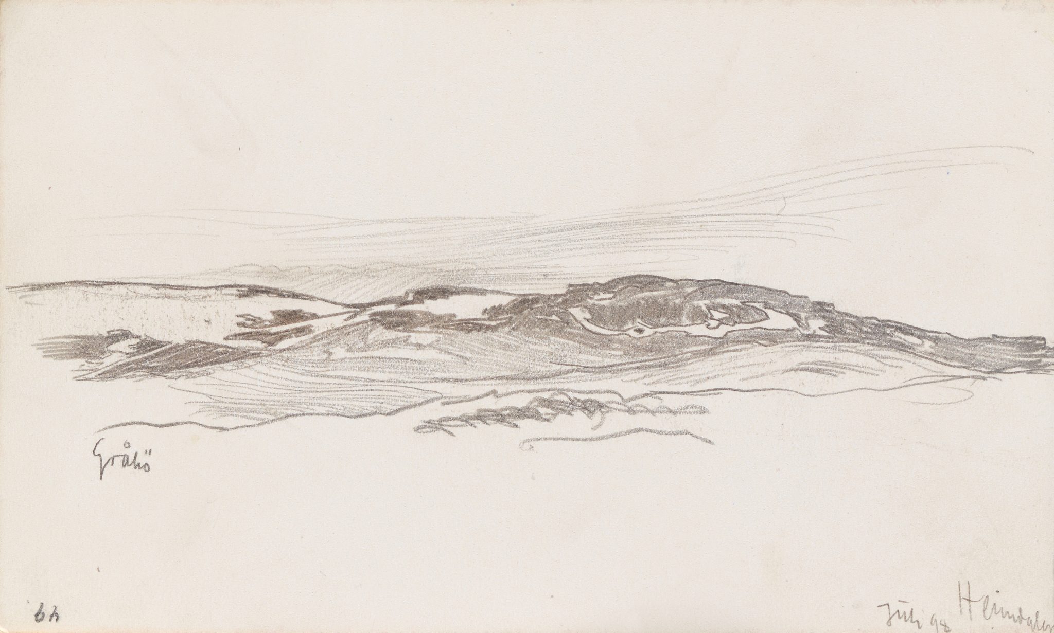 Eilif Peterssen (1852-1928) Blyant og fargeblyanter på papir, 10,9 x 18 cm, Nasjonalmuseet, Oslo. På tegningen er det notert at den er utført i juli 1898, og motivet er hentet fra Nord-Fron i Gudbrandsdalen, fra venstre mot høyre Gråhø og Heimdalshø. Kunstneres skissebøker ligger som regel trygt forvart i museenes magasiner, og stilles sjelden ut. […]