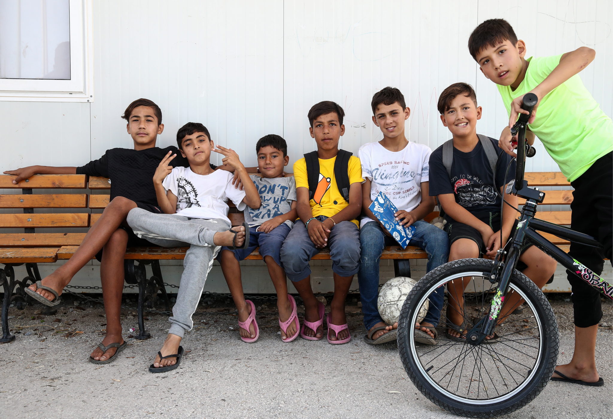Unge migranter befinner seg i Kara Tepe-leiren på den greske øya Lesbos den 11. oktober 2019. Foto: Valery Sharifulin / TASS / Sipa USA / Scanpix.