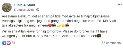 Kiani er ikke en «bekvemmelighets-muslim». I august i fjor varslet hun at hun skulle på haji; pilgrimsreise til Mekka.