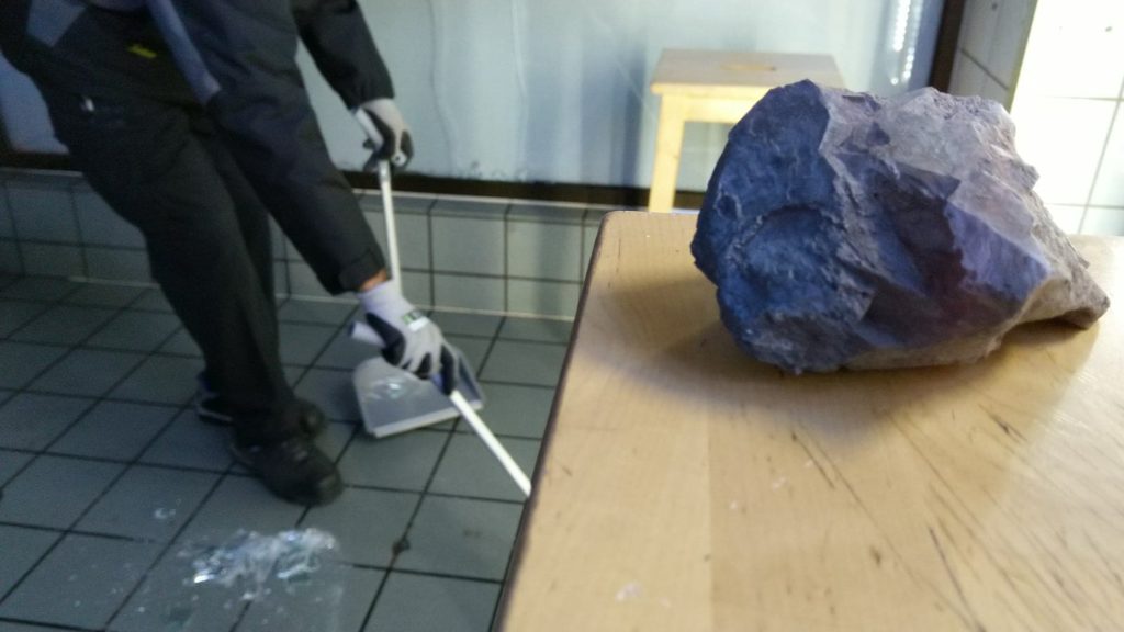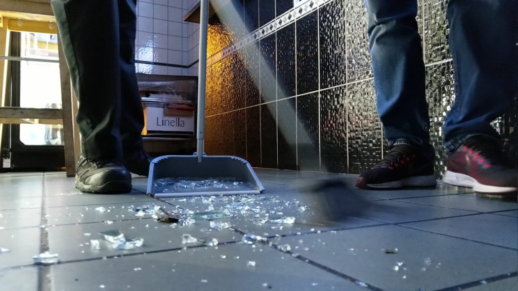 For fjerde gang på atten dager har gjerningsmenn ramponert pizzeriaen. For fjerde gang flyter det av knust glass på gulvet.