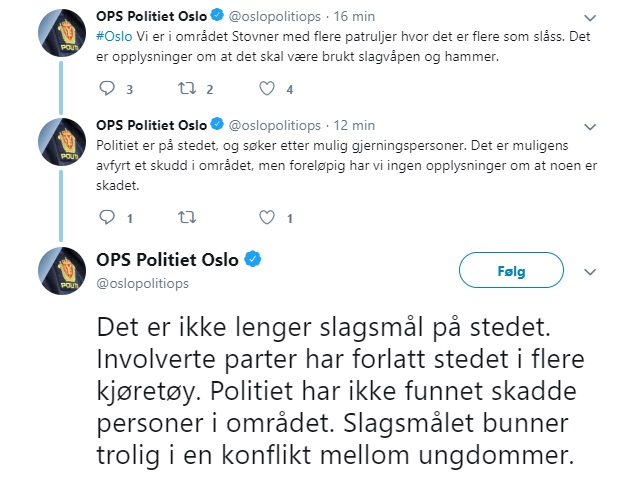 Masseslagsmål har brutt ut ved Stovner Vgs i Groruddalen i Oslo. Politiet melder at det muligens er avfyrt et skudd i området. Alle parter har forlatt stedet og ingen skadde er funnet, skriver politiet på Twitter.