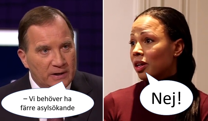 Tidligere kulturminister, Alice Bah Kuhnke, nå EU-politiker på vegne av Sverige (fra 2. juli i år), er ikke enig med Löfven. Hun representerer det svenske «fremskrittet», der hun har gambisk far og svensk mor, er kvinne, veganer, pro-EU og miljøforkjemper. Kort sagt: det er kryss i alle de viktigste boksene for en stor fremtid i politikken. Alice Bah Kunhke liker oppmerksomhet og hun var tidligere programleder på TV før hun gikk inn i politikken.