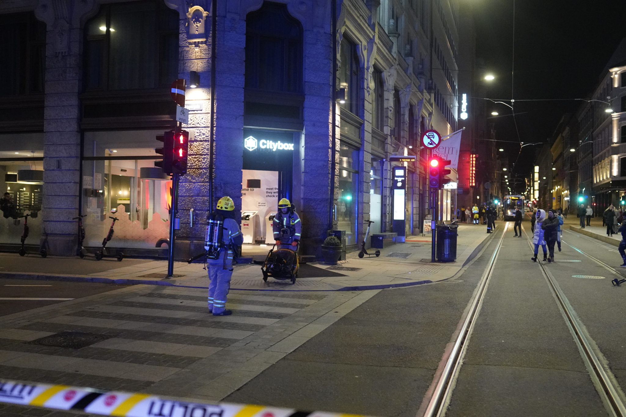 Hotell i Oslo sentrum evakueres etter en gasslekkasje om kvelden den 27. oktober 2019. Foto: Fredrik Hagen / NTB scanpix.