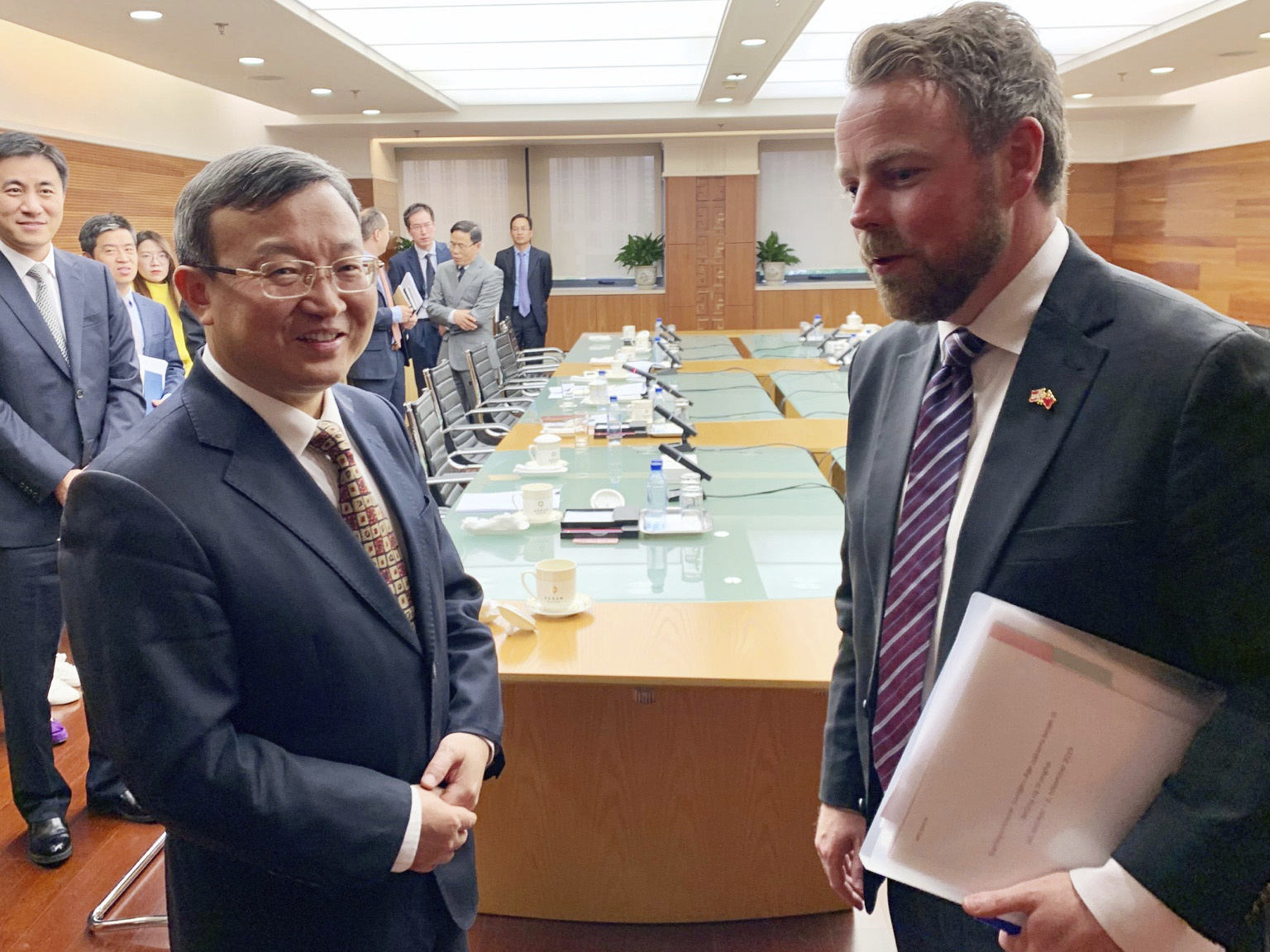 Fortsatt gjenstår krevende forhandlinger for at Norge skal kunne få en frihandelsavtale med Kina, ifølge næringsministeren. Torbjørn Røe Isaksen var torsdag i Kina der han drøftet forhandlingene med Kinas visehandelsminister. I 2018 handlet Norge varer med Kina for nærmere 92 milliarder kroner, men omtrent tre firedeler av varehandelen var norsk import.