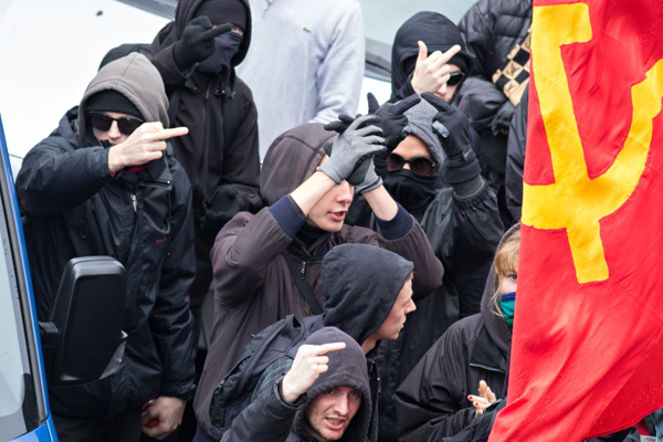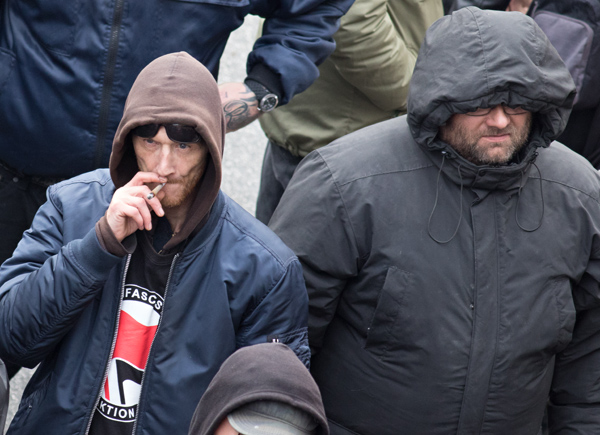 Scandza forum hadde møte på Amager i København. Antifa er mye sterkere i København enn i Oslo. Hvem er det som ser mest truende ut?